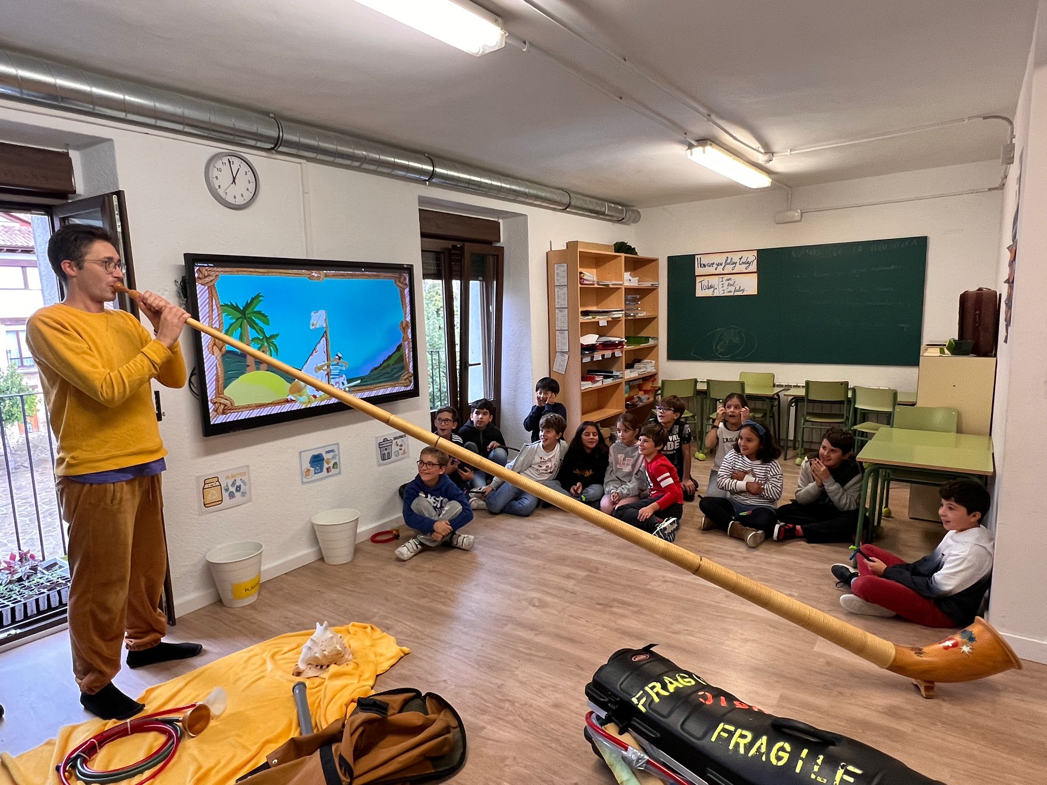 Programa Antonio Tromboncino. Inspirado por la comedia musical «Dr. Mike S. Voboda Alphorn Therapy» de Mike Svoboda (*1960), Antonio Jiménez crea un teatro musical para músico de viento-actor en el cual, a través de una historia imaginaria con composiciones propias, presenta instrumentos como la trompa alpina, didjeridú, conchas de mar y objetos como tuberías, grifos de agua o mangueras de jardín. Antonio Jiménez Marin-Náufrago para Concha y Público Antonio Jiménez Marin–Las preguntas de la Isla (2022) para «Didjeridú» Antonio Jiménez Marin – Cigarras, el mejor somnífero (2022) para dos Mangueras Alphorn Traditionals: Erst den Schweizer Alphornruf! / Über Feld und Wald! Del libro «Alphornbüechli» de A.L.Gassmann, 1938 Antonio Jimenez Marin – Déjate llevar por la música (2022) Dúo para Alphornist y Público con campanas de juguete Antonio Jimenez Marin – Tromboncino (2022) para Trombón y Asistentes Antonio Jimenez Marin – Carioca (2022) para Trombón y Público Intérprete Antonio Jiménez-Marín – trombón. Jiménez Marin es un músico dedicado a la exploración de las posibilidades del instrumento que ha llevado sus performances a los más destacados festivales del mundo como Aldeburgh Festival, Paris Manifest, London Proms, Lucerne Festival, Wien Modern y Zeiträume Basel con ensembles como Ensemble Modern, Klangforum Wien, Remix Ensemble Casa da Música, Basel Phoenix Ensemble and Collegium Novum Zürich. Descripción Antonio Jiménez Marín, junto con los coordinares pedagógicos del centro, se trasladan hasta el lugar de referencia del alumnado. El hecho de acceder a su zona educativa, hace que el alumnado se sienta abierto a recibir con entusiasmo cualquier propuesta. El trabajo entre el docente del aula y los coordinadores pedagógicos del proyecto tiene que ser clave para el correcto desarrollo de la sesión, y poder sacar el máximo rendimiento a la experiencia. En esta ocasión, el alumnado es un personaje o intérprete más del cuento musical. En determinados momentos tendrá que interactuar y en otros interpretar música a través de los instrumentos que construyan. Taller construcción de instrumentos. Sesión de 1hora y media de duración impartida por Antonio Jiménez, en la que a través de materiales reciclados; el alumnado construirá su instrumento. El alumnado aportará los materiales que se le soliciten, para el día del taller. “Tromboncino”. Asistencia y participación en el cuento “Tromboncino” que tendrá lugar en la propia escuela. Será interpretado por Antonio Jiménez. La duración aproximada es de 30 minutos. El músico Antonio Tromboncino, tatatatataranieto del compositor renacentista italiano Bartolomeo Tromboncino (Verona, 1470 – Venecia, 1535), sufre un naufragio y pierde la memoria. Se encuentra en una isla con tan sólo un baúl. ¿Qué hay dentro de ese baúl? ¡Instrumentos musicales inusuales y objetos que también pueden utilizarse para hacer música! Haciéndolos sonar recordará quién es y lo que ha sucedido. «Antonio Tromboncino» recoge las siguientes intenciones pedagógicas: 1.-El público juega un papel activo como actor espontáneo de la historia, cantando, interactuando o improvisando motivos melódicos y rítmicos. 2.-A través de las composiciones creadas para tal efecto, se introduce una selección de técnicas extendidas y formas inusuales de tocar los distintos instrumentos y objetos. Hay un deseo por que el público reconozca la imitación instrumental de sonidos cotidianos del hogar, ruidos de la ciudad, naturaleza y animales Acción conjunta al aire libre donde el alumnado participante conoce a otro alumnado y escucha su interpretación en la calle. La experiencia pedagógica incrementa en valor, ya que su trabajo es observado y escuchado por alumnos y alumnas de otros centros. Alumnado de su misma edad ha llegado a conclusiones diferentes a partir de una misma premisa; y eso hace que enriquezca el resultado y el sentido crítico.